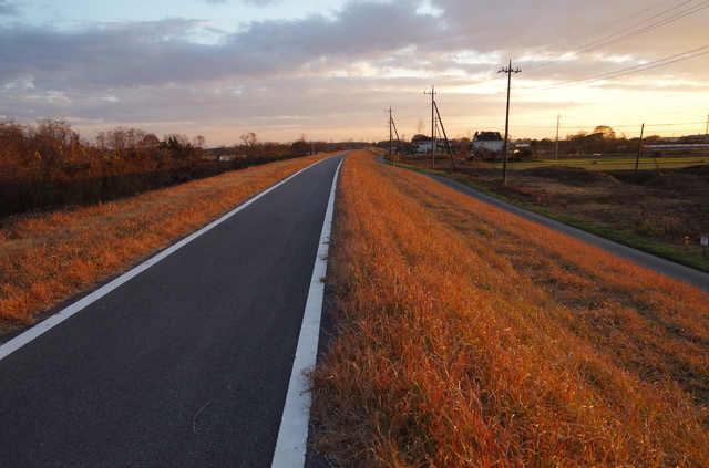 2時頃から日暮れまで鬼怒川サイクリングロードを走っていたような感じです.日が落ちるのが早いので,夜間装備を身につけようと停車したときが日没の少し前でした.